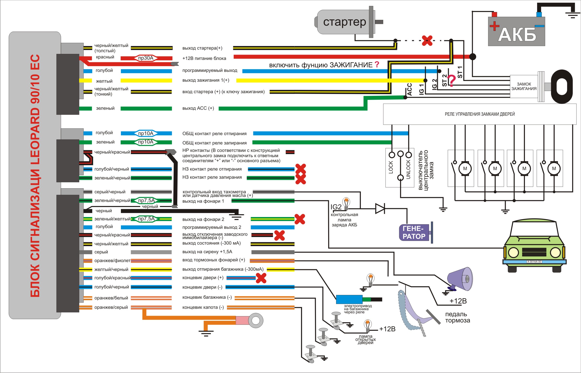Именно так. Голубой программируем на зажигание и подключаешь на IGN2, зелёный на АСС (чтобы та самая печка включалась), и на второй провод стартера обязательно питание! (можно запараллелить с толстым чёрно/жёлтым) | Kolyamba писал(а): | | И еще функция контроля двигателя лучше всего как я понял подключить его к лампе заряда АКБ, прямо в щитке приборо |