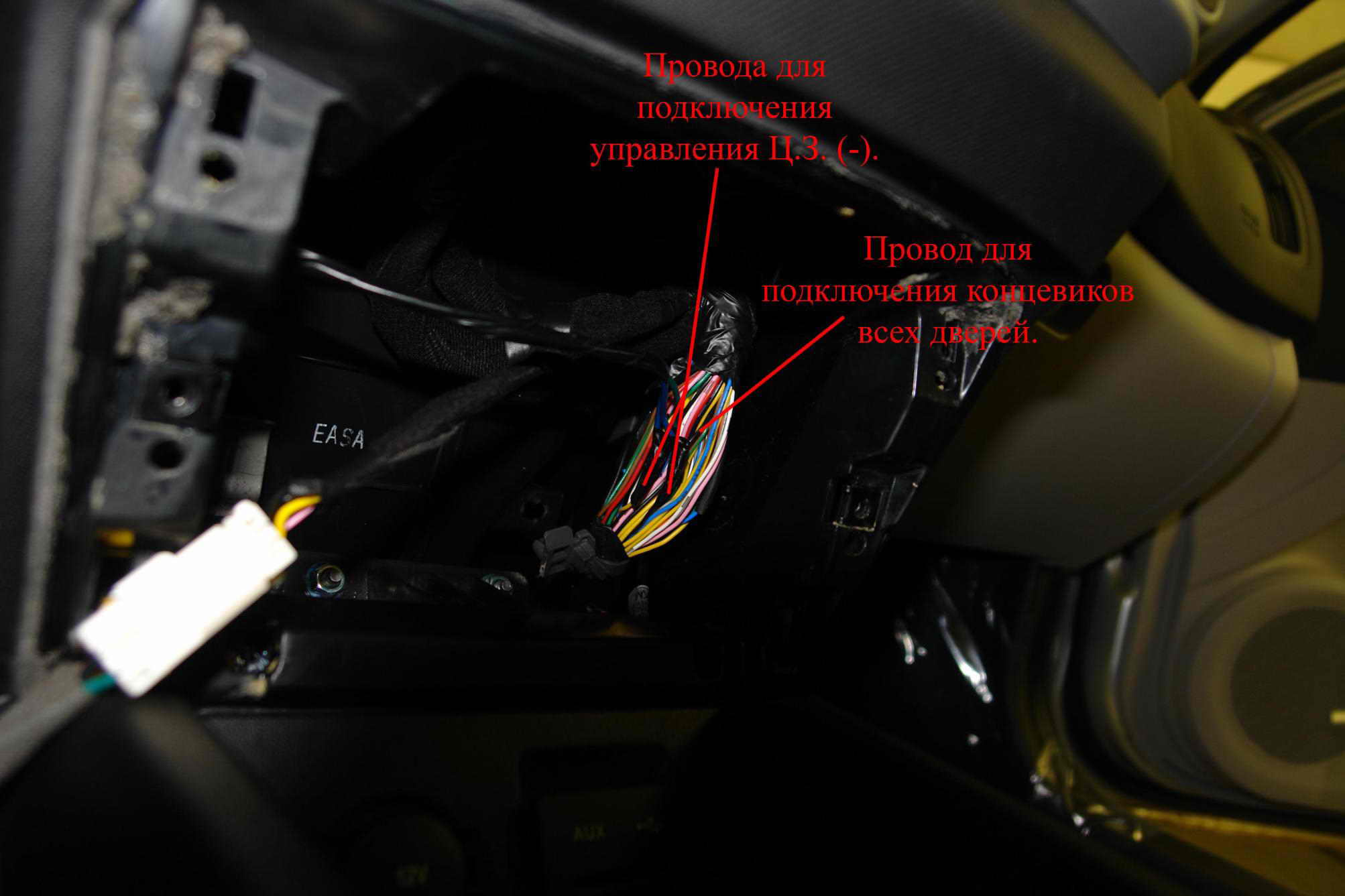 Снимаешь приборку, за ней вдалеке есть блок Ц.З. К нему ещё жгут идет притянутый хомутом. Перекусываешь этот хомут. Снизу рукой добираешься до разёмов этого блока, отстыковываешь и вытаскиваешь в щель между воздуховодом в образовавшееся пространство от снятой приборки. В этом разъёме Жёлтый - отпирание, Жёлтый/красный - запирание. Управление минусовое.