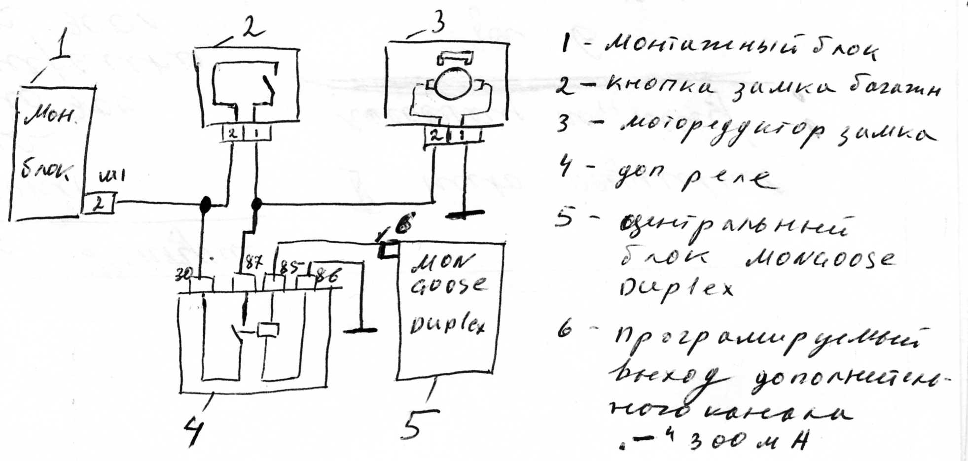 2. Провод дополнителоьного канала сигнализации Mangoose Duplex при управлении багажников подключается к проводу идущему от кнопки открытия багажника в салоне (на автомобиле ВАЗ-2110) или куда-то в другое место?