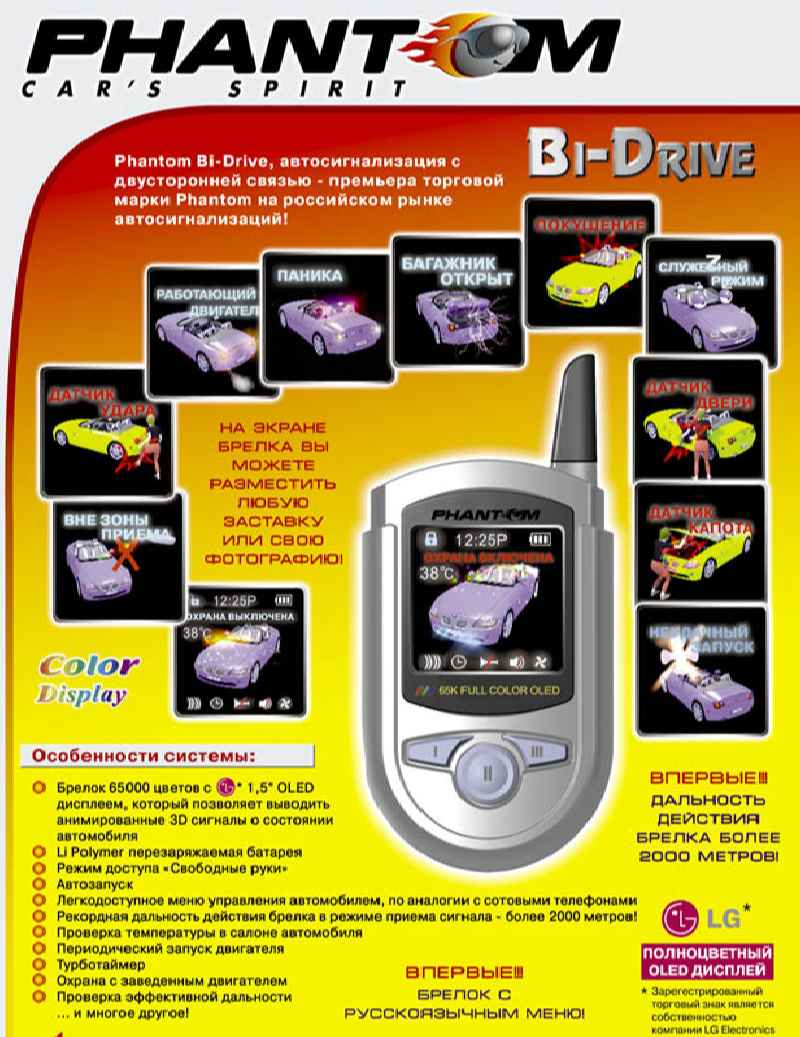 Система с ЦВЕТНЫМ (65000 цветов + 3D анимация!) дисплеем брелка, дальней двухсторонней связью (до 2 км), автозапуском, турботаймером и кучей других интересных фишек.