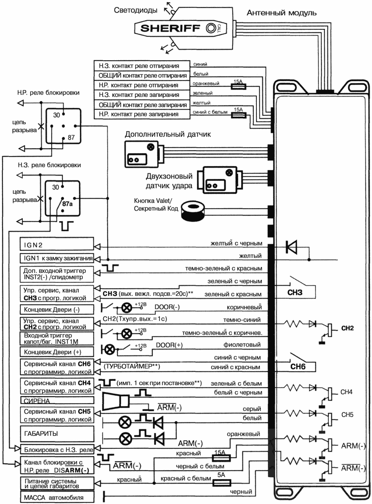 Сомнения вот в чём: в руководстве на схеме в блоке сигнализации на CH2 CH4 и CH5 уже нарисованы диоды перед транзистором, т.е. можно уверенно ставить одно реле без диода (например для управления багажником по каналу 2)? Хотя на схеме примерного использования канала 2 для управления багажником нарисован диод между 85 и 86 контактом, но там написано что подключать к 86 контакту синий провод а у канала 2 провод не синий а темно-синий...