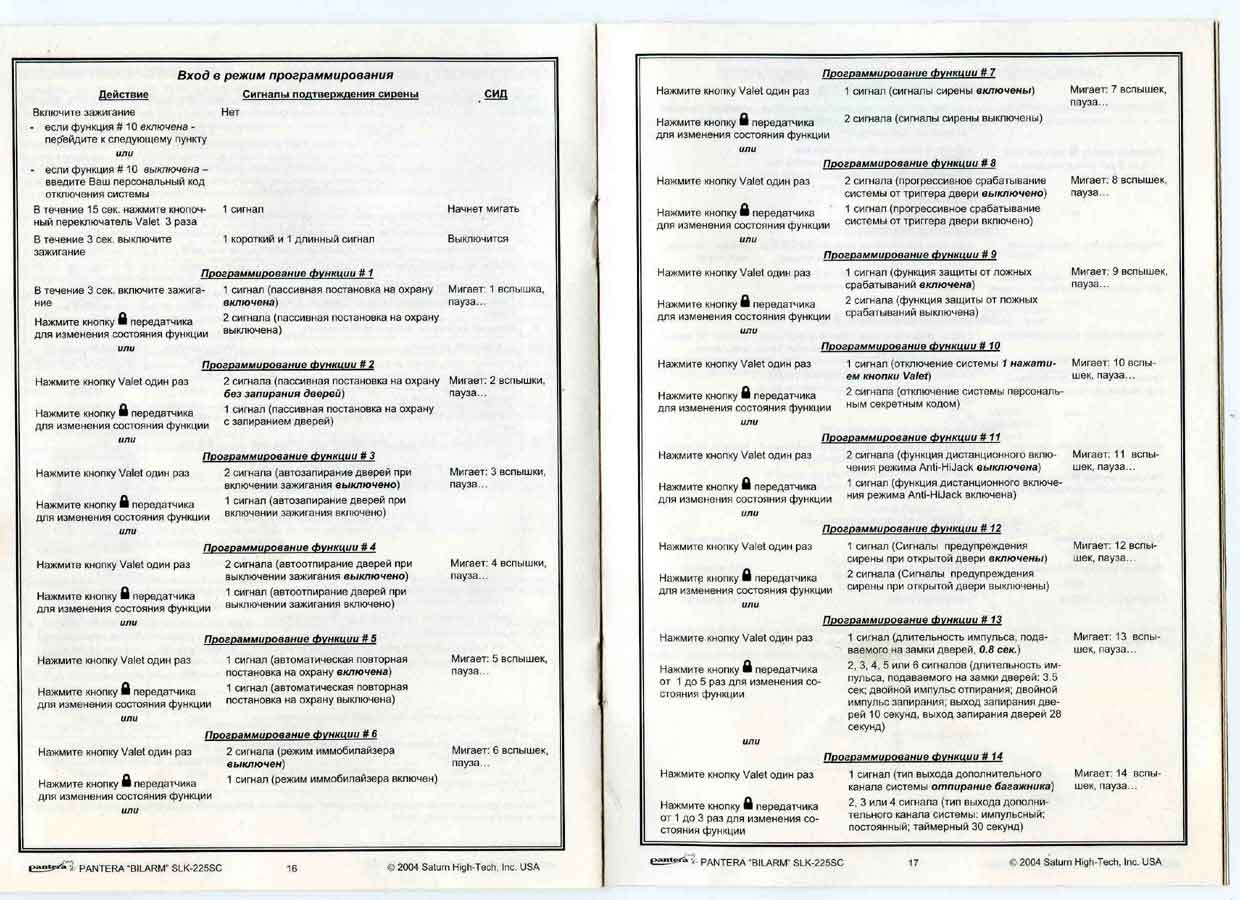 Купил авто, сигнализация pantera slk-550rs, не могу отключить функцию пасивная охрана, каторая включается ч\з 30 сек. Пробывал по книжке(файл выше) не получилось или не так все сделал!