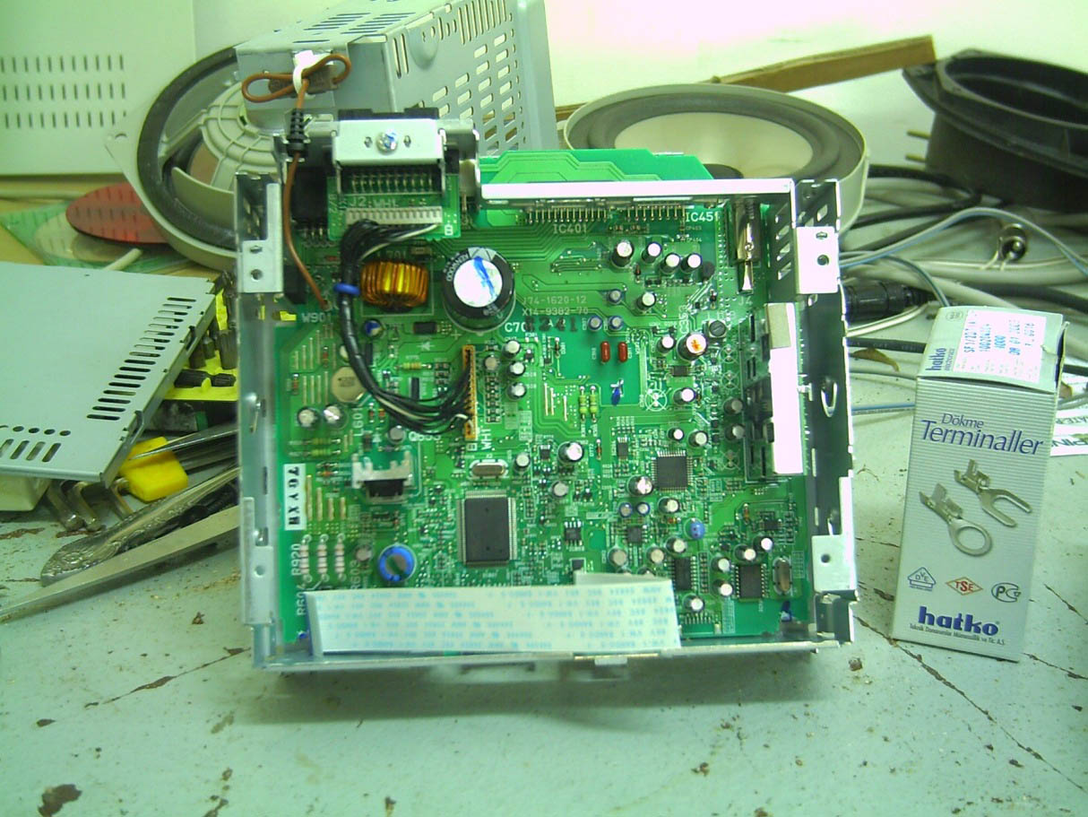 | Две микросхемы IC401 и IC451 - выходной усилитель (лев/прав. канал) надо посмотреть их марку, по справочнику (или в инете можно найти) найти ножки "вход", и взять с них сигнал.