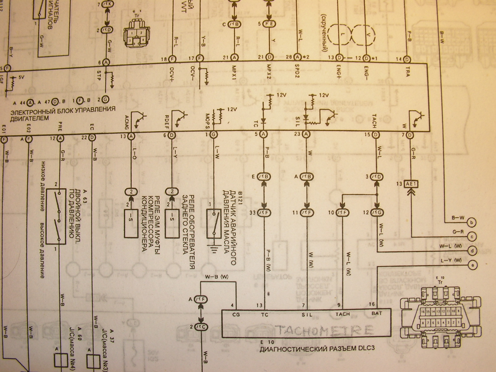 | Прилагаю схему, где можно нащупать точку тахометра. |