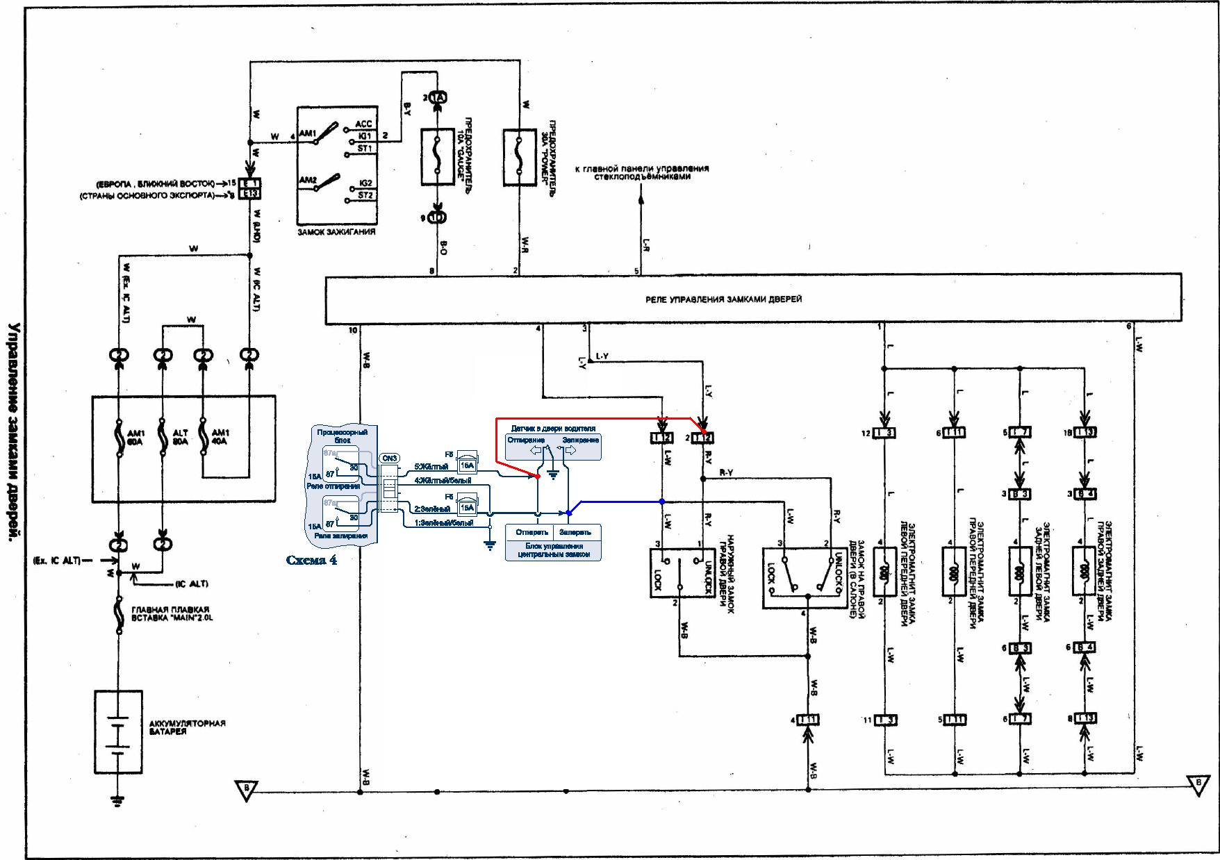 по цетральному замку, вот схема если я не ошибаюсь то выбрал правильный вариант???? пробывал подлючать мультик на цепь , один щуп на цепь заперания другой щуп на массу кузова, при запирание на момент появляется импульс минуса