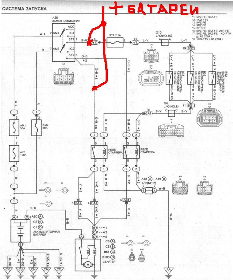 Здравствуйте уважаемые форумчане!!!!!!!!! Первый раз ставлю сигнализацию на свой автомобиль, возник вопрос, правильно ли я понимаю! Для реализации дистанционного автозапуска мне во время дистанционного пуска необходимо на провода ST1 и ST2 податть + батареи замка зажигания??????????? судя по схеме я так полагаю, а вопрос возник по причине следующей, нашел я точки подключения для своего авто, где написано что точка подключения стартера это черно белый провод (B-W) про провод G-B ни слова! как подключать???????? схема в файле[/img]