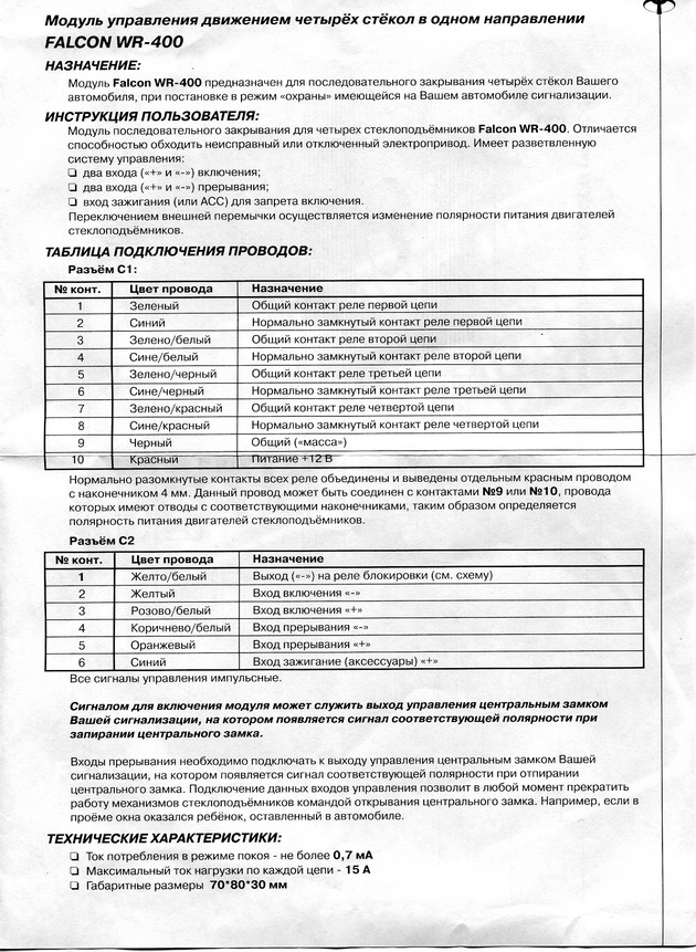 ПОМОГИТЕ FALCON WR-400 МОДУЛЬ УПРАВЛЕНИЯ СТЕКЛОПОДЬЕМНИКАМИ