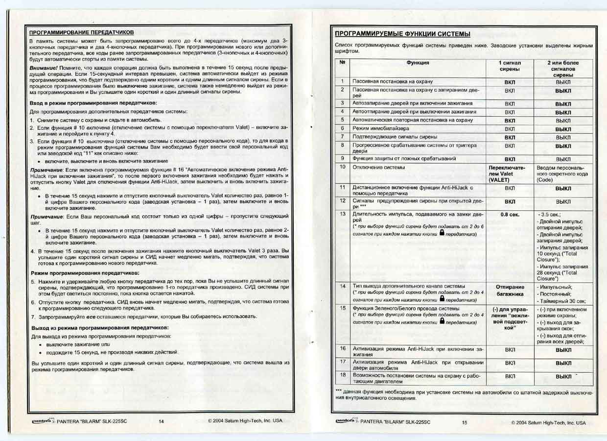 Купил авто, сигнализация pantera slk-550rs, не могу отключить функцию пасивная охрана, каторая включается ч\з 30 сек. Пробывал по книжке(файл выше) не получилось или не так все сделал!