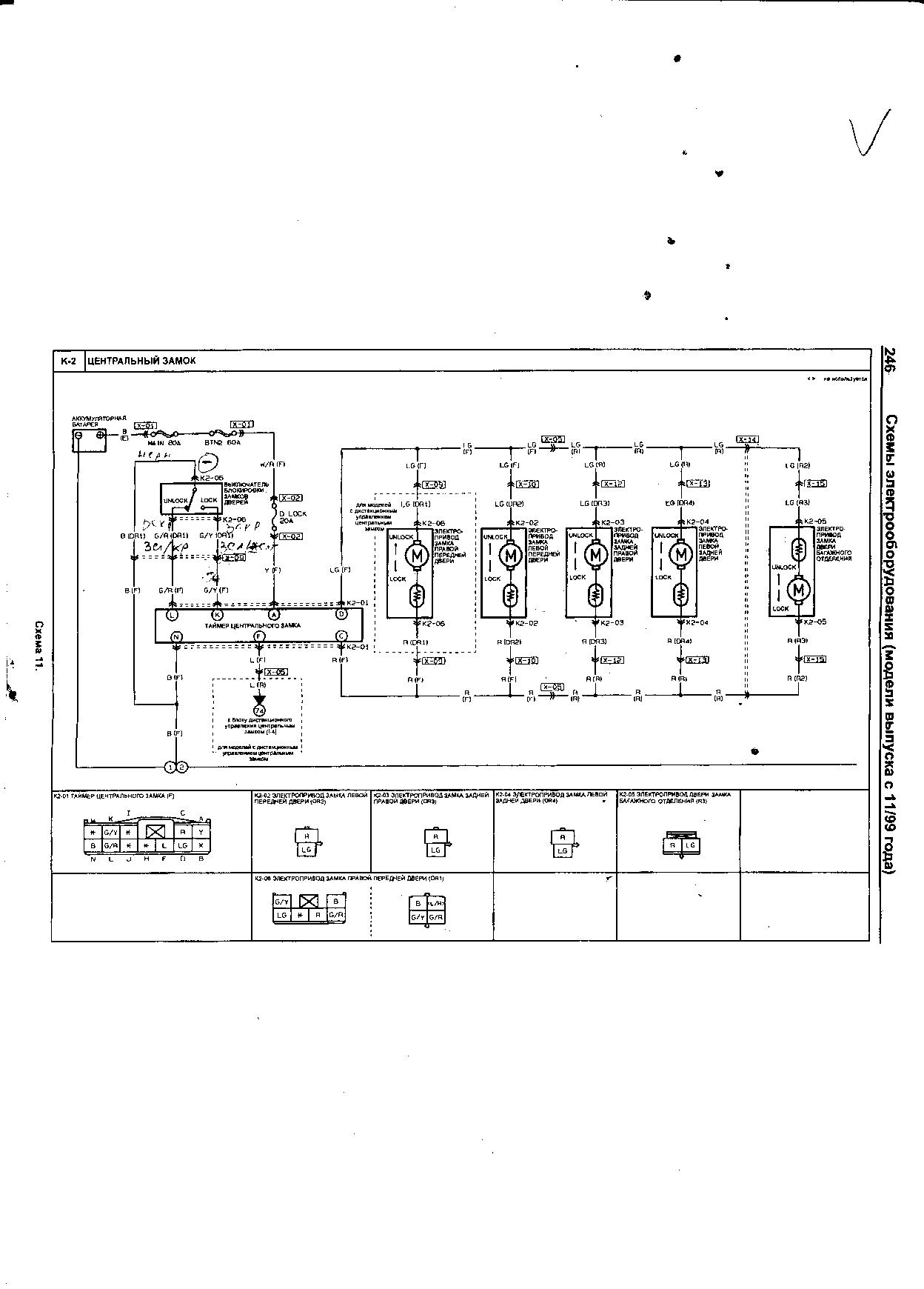 Прозваниваю провода в двери по схеме (прилагаю), предполагаю что система с тремя проводами с общим проводом на массе, получается ерунда- при замыкании черного провода на зелено/красный происходит открывание дверей (при условии, если были закрыты). При замыкании черного на зелено/желтый провод- открывания не происходит. ЦЗ от брелка, либо от ключа исправно работает.