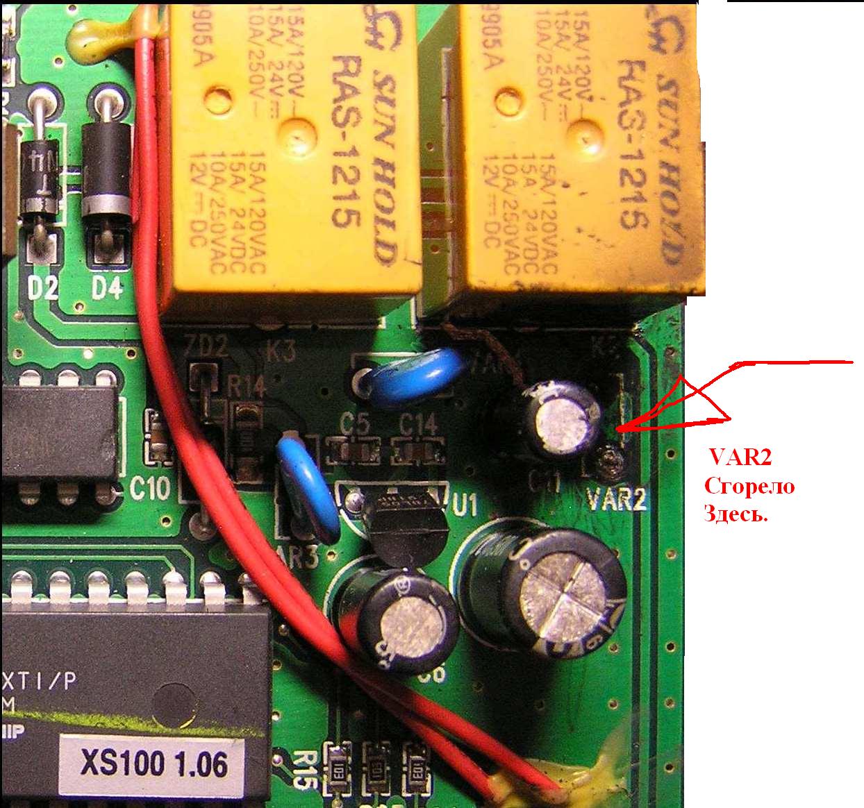 Загорелась сигнализация. Сгорел варистор Var2,предполагаю, что он такой же, как и еще два на этой же плате (DNR 07D220K), но хотелось бы знать точно. Идентифицировать после того, как он сгорел, к сожалению, невозможно.